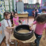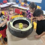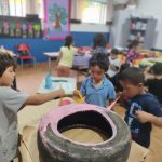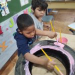 Foi um momento mágico, onde utilizaram para aprender cores, coordenação motora e também irão fazer uma horta na escola, só estão esperando a chuva que está sendo constante parar um pouco para fazer mais e mais coisas com esses pneus.