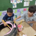As crianças aprenderam cores, reutilização, meio ambiente e se sentiram protagonistas de sua própria história em ajudar o meia ambiente e sua conservação.