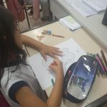Desenvolvimento: Os alunos ouviram o podcast: O amigo invisível e o inimigo que não se vê(na plataforma da Arteris). Depois pintaram a personagem Bela da Turminha pé na estrada.