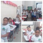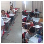Durante a aula, a professora do 4° ano, trabalhou juntos com os alunos o tema Árvore e poema. Os alunos leram e comentaran sobre o assunto e em seguida pintaram o desenho e interpretaram o poema, explorando muitos assuntos referentes ao tema: queimadas, desmatamento e os cuidados e preservação do Meio Ambiente.