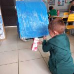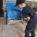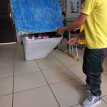 Os alunos demonstraram na prática o que acontece quando jogamos lixo nos rios e mares. E para isso construíram uma baleia com papelão, depois coloriram com tinta guache. Em seguida colocaram diversos tipos de lixo em sua boca, reproduzindo as atitudes erradas do ser humanos e quais consequências essas atitudes trazem.