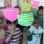 E para esclarecer sobre este movimento, a professora Ana Campos trabalhou com os alunos um texto informativo sobre o por quê do Maio Amarelo. Os alunos tiveram oportunidade de ler, compreender e expor seus conhecimentos sobre o conteúdo estudado. Após a leitura e roda de conversa, os alunos tiveram a oportunidade de relembrar a importância de obedecer o semáforo através de dramatização.