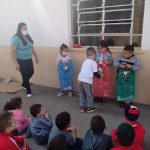 Desenvolvimento:  Durante a integração da semana, preparamos uma história para refletir sobre o que fazer com o lixo que produzimos diariamente. Na História do Zé Porquinho,  ele era um porquinho que não seguia as orientações dos pais, de jogar o lixo no lixo ou nos latões de coleta seletiva, ele era preguiçoso e  jogava o lixo em qualquer lugar, sem se importar com as conseqüências. Mas um dia de muita chuva, houve uma enchente na sua casinha de água e lixo , inclusive com o lixo que ele descartou de forma errada, então ele percebeu a importância de fazer a coisa certa de obedecer às ordens de seus pais ao descartar o lixo. Ele aprendeu que quando fazemos o que é certo só temos a ganhar e assim podemos evitar muitos problemas. Em seguida, realizamos um debate para discutir a atitude do Zé Porquinho, onde as crianças puderam expor suas opiniões e sugestões de mudança para o comportamento do porquinho. Num outro momento iniciamos a uma atividade prática de como separar o lixo de acordo com a composição do material- papel, plástico, vidro e metal, destacando os cuidados que devemos ter ao descartar esses materiais, inclusive na prevenção de acidentes no caso do vidro (cuidados com quem descarta e com quem recolhe esse material). Os alunos manusearam os materiais, separaram e descartaram cada um no seu lugar, de acordo com a cor e o material indicado no saco.