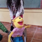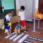 Criamos uma brincadeira enfatizando um teatrinho, onde os alunos com a utilização de fantoches apresentavam boas maneiras de agir no trânsito.