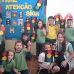 Confeccionamos semáforos destacando a função e importância de cada uma conscientizando nas relações do trânsito.