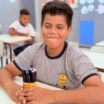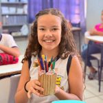 Para a confecção do porta-lápis, os alunos utilizaram materiais recicláveis como garrafas PET, latas, rolos de papel higiênico, caixas e outros itens que seriam descartados. Cada aluno pôde decorar seu porta-lápis de forma livre, utilizando tinta, papel colorido, tecidos, adesivos e outros materiais disponíveis.