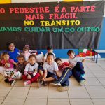 As crianças estão empolgados com essa linda caminhada que iremos fazer pela avenida de nossa cidade. Vamos mostrar para a população que a parte mais frágil do trânsito é o PEDESTRE.