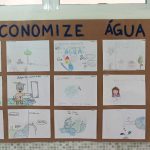 Dando continuidade, os alunos desenvolveram cartazes com mensagens de conscientização sobre a economia de água. Essa atividade estimulou a criatividade, o trabalho em grupo e o protagonismo dos estudantes, além de reforçar atitudes sustentáveis. Os cartazes foram elaborados com frases, desenhos e orientações práticas sobre como economizar água em casa e na escola.