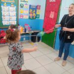 Foi explicado as crianças que para preservar o meio ambiente precisamos separar e reciclar o lixo, através da coleta seletiva. Com algumas imagens de materiais recicláveis, classificamos nas lixeiras e construímos um brinquedo com reciclável.