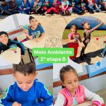 Durante as aulas , foi proposto uma roda de conversa para que todos os alunos das 2° etapas pudessem interagir e conscientizar-se sobre a preservação e a conservação do meio ambiente, foi trabalhado o vídeo https://youtu.be/-VP5NEnnkyI?feature=shared (Turma da Mônica Um Plano Para Salvar o Planeta), onde as crianças foram convidadas a plantarem sementes de girassóis em garrafas Pets, trabalhando a reutilização do material reciclável e o cultivo de flores. Ampliamos a conversa sobre as cores das lixeiras.