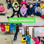 Passamos o vídeo https://youtu.be/0RiNk93qnZE?feature=shared (As cores das lixeiras/coleta seletiva/ meio ambiente), orientamos de acordo com as normas mundiais da coleta seletiva de lixo, que procede assim: Coletor Amarelo – Metal, Coletor Azul – Papel, Coletor Vermelho – Plástico, Coletor Verde – Vidro e o Coletor Marrom – Orgânico, trabalhamos o descarte corretos dos lixos de forma lúdica, conduzindo os alunos até as lixeiras da escola, espalhar no pátio diferentes tipos de lixos recicláveis e pedimos que uma criança por vez, pegasse um “lixo” e descartassem na lixeira da cor correspondente ao tipo de lixo.