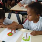 Iniciamos com a leitura do livro: “Preservar a Natureza, nós podemos”, roda de conversa e produção de desenhos sobre o meio ambiente e em um trabalho interdisciplinar com Arte e em comemoração ao dia da árvore, pintura com a ponta dos dedos.