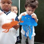 A professora Juliana Cândido, que ministra as aulas de arte e música, propôs aos seus alunos um trabalho significativo e contextualizado, mostrando a eles que devemos preservar a vida em todas as situações. E partindo da música “Planeta Contente”, explorando a letra da música de acordo com o nível de entendimento de seus alunos do berçário II B, mostrou aos pequenos alguns animais do fundo do mar para que os mesmos pudessem ter contato e manipularem. Explicou as crianças que esses animais marítimos vivem no fundo do mar e as orientações que devemos ter para: cuidar, proteger e preservar essas espécies de maneira lúdica e divertida.