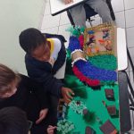 Mural interativo com alunos participantes do projeto do Meio Ambiente.