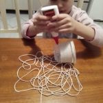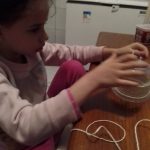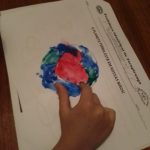 Nas aulas de ARTE, ela confeccionou um lindo porta treco usando embalagem plástica , barbante usado e cola e também pintou o planeta TERRA com tinta guache.