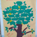 Finalizamos a aula com um cartaz onde os alunos montaram uma árvore colando suas partes e dentro das folhas escreveram palavras de incentivo e conscientização para sua preservação.