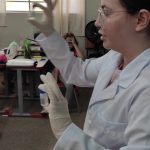 A bióloga Victória Caribé fez uma experiência com as crianças explicando sobre o ciclo da água.