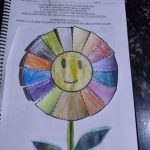 Pinte a flor bem colorida e com bastante capricho e depois recorte em cima do pontilhado.