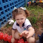 A animação dessas crianças de 2 a 3 anos do berçário III G, vespertino aqueceu o coração da Professora Josi ao ver eles plantarem na horta, e escolheram como primeiro o morango.
