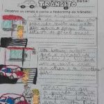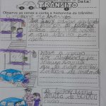 A atividade consiste numa produção de texto, que é um conteúdo fundamental no 3º ano, pois é nesse momento que o aluno começa a organizar seus pensamentos e transformá-los em palavras. Esse processo exige tempo, incentivo e estratégias que facilitem a construção da escrita de forma clara e coerente. Para auxiliar os estudantes nessa etapa, utilizamos imagens associadas ao texto. Esse recurso visual facilita a compreensão e ajuda a criança a organizar a sequência de ideias. Mesmo que ainda apresentem algumas dificuldades, os alunos conseguem, com apoio das imagens, registrar no papel uma sequência lógica de cenas e acontecimentos. O tema “trânsito” por ser algo presente no dia a dia dos alunos e por ser um assunto vivenciado por eles em diferentes situações – ao vir para a escola, ao caminhar pelas ruas ou observar os veículos – os estudantes, mesmo com repertório ainda em construção, conseguiram elaborar pequenas produções de texto. Durante a atividade, observaram, refletiram e escreveram sobre sinalizações, atitudes corretas e incorretas no trânsito, além da importância de respeitar as regras para garantir a segurança de todos. O uso de imagens relacionadas ao tema tornou o processo mais leve, significativo e motivador.