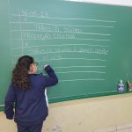 Num segundo momento, as crianças eram convidadas a irem até o quadro escreverem sua própria frase ou a sugestão dos amigos que se sentiam tímidos para irem a frente.