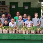 AS CRIANÇAS RECEBERAM MUDAS DE TOMATE CEREJA PARA LEVAREM PARA CASA E , ALÉM DE SE RESPONSABILIZAREM PELOS CUIDADOS DA PLANTA, PODEM ACOMPANHAR SEU DESENVOLVIMENTO E A PRODUÇÃO DOS FRUTOS, CRIANDO ASSIM, UM VÍNCULO COM A NATUREZA E SENSO DE RESPONSABILIDADE.