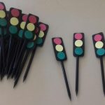 A professora Marlem preparou carinhosamente uma lembrança para que os alunos presenteassem a família: um lápis decorado com semáforo.