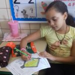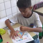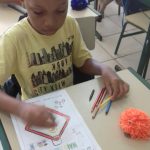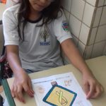 A turma do 3º ano coloriu um desenho com o ícone do Maio Amarelo, em seguida produziram um texto para leitura da família.