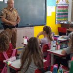 Nossa turma do 5° ano participa toda segunda-feira do PROERD – Programa Educacional de Resistência às Drogas com o profissional Cleuton Bakum da Polícia Militar de Rio Negro, que está semana aproveitou para tratar também sobre a Responsabilidade do Pedestre, considerando a passagem do dia 8 de agosto, Dia Internacional do Pedestre.