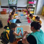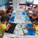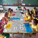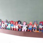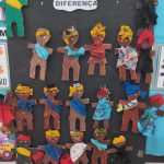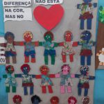 Apresentação do mesmo, passar de mão em mão pra olhar, tocar, imaginar. Após leitura questionamentos de interpretação. Objetivo, inculcar senso de igualdade, respeito as culturas, religiões, raças, notando a grande diversidade e variedade de etnias no nosso meio. Cada criança recebe um boneco, pinta, após recebe um panô da cultura afro, que irá decora com materiais recicláveis, segundo sua criatividade, esse acessório é usado na cultura afro pra por na cabeça, no corpo, pra segurar o filho junto ao corpo da mãe, e na cabeça, e também pra presentear outros, usaram também a criatividade para fazer os cabelos e desenhar os rostos.