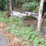 a) Esgoto lançado diretamente no rio;