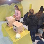 Como forma criativa de apresentar o conteúdo, os alunos confeccionaram pratos saudáveis feitos de massinha de modelar, demonstrando, de forma lúdica, o que compõe uma refeição balanceada. Além disso, dois jogos interativos foram preparados para os visitantes: um jogo de trilha com perguntas e desafios relacionados ao tema, e uma atividade onde o público deveria separar os alimentos saudáveis e não saudáveis, colocando-os em caixas (representadas por bocas) diferentes.