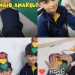 Dentro das ações do Maio Amarelo, a oficineira de Artesanato desenvolveu uma atividade criativa e educativa com os alunos do 3º ano, abordando o tema do semáforo e seus significados. A proposta teve como foco ensinar o que cada cor representa — verde (siga), amarelo (atenção) e vermelho (pare) — reforçando a importância de respeitar a sinalização para um trânsito mais seguro. Além do aprendizado teórico, os alunos participaram da confecção de chapéus com as cores do semáforo em formato de coração, unindo arte e educação de forma lúdica. A atividade promoveu o envolvimento das crianças de maneira afetiva e simbólica, valorizando o cuidado com a vida no trânsito desde a infância.