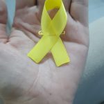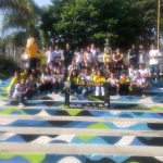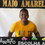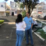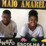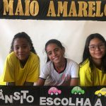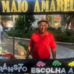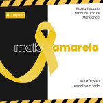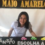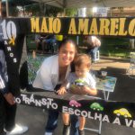 Após a conscientização na faixa de pedestre, espalhamos mensagens com fitinha amarela na praça da cidade.
