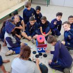 A educadora confeccionou uma mini cidade com os alunos, ressaltando as regras de trânsito e as leis!