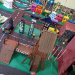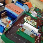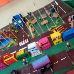 A educadora realizou uma cidade com os alunos nas aulas de artesanato, destacando as leis e normas de trânsito!