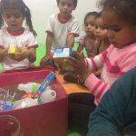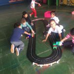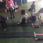 Conversar na rodinha sobre os meios de transportes e também profissões relacionadas a carros, ônibus, carros de corrida… as diferenças de velocidade dos veículos nas ruas, estradas e conscientizar sobre o meio ambiente e sua preservação: o que fazer com esses materiais que vão ser jogados no meio ambiente reaproveitando e transformando em brinquedos. Explicar a atividade a ser realizada e em seguida brincar no pátio com os brinquedos construídos e a pista de corrida.