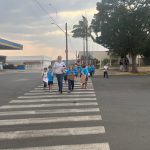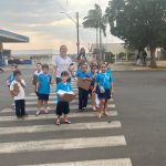 A professora levou os alunos para observar as placas de trânsito, eles também notaram a falta de árvores nas ruas de Riversul, pouca arborização, mas por onde passamos embora faltasse lixeiras  as ruas estavam limpas.