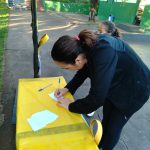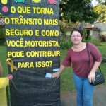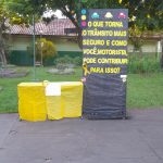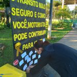 Os pais, após uma conversa sobre o tema, escreveram dicas de segurança no trânsito, montando após um painel colaborativo, que ficou exposto na escola.