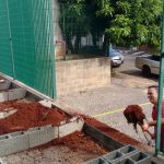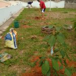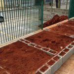 A horta está sendo construída devido a terra de má qualidade ao redor da escola, além da grama/mato de