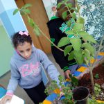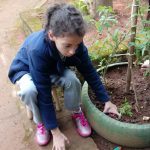Conteúdo: Roda de conversa sobre o Meio Ambiente, vídeo informativo sobre como preservar e reaproveitar. Brinquedos com materiais reaproveitados, pareamento das lixeiras de coleta seletiva, jogo da memória, plantio de mudas na horta, plantio de flores no jardim enfrente a sala de aula.