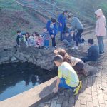 Recolhendo os lixos que foram descartados no meio ambiente de forma inadequada.