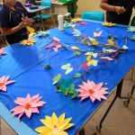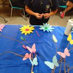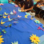 A educadora confeccionou um painel sobre a primavera, trabalhando a sustentabilidade.