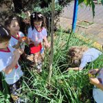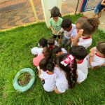 Seguiremos o projeto com a contação de história: “Os Detetives da Água”, onde a professora pede a ajuda dos alunos para proteger a escola do mosquito da dengue. Todos se reuniram e começaram a procurar lugares onde o mosquito, provavelmente, usaria para colocar seus ovos. Encontraram um balde com água no cantinho do pátio e esvaziaram. Viraram uma garrafa que estava com a boca para cima. Tiraram a água do pratinho das plantas e colocaram areia…E assim, cada criança levou uma missão para casa: cuidar do quintal e proteger toda a família e vizinhos.
