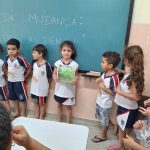 Aula teórica sobre a planta Citronela, seus cuidados e benefícios em colaboração com as famílias das crianças na escola, com utilização de recursos visuais. A atividade viabilizou as crianças contarem o que aprenderam do projeto até esse momento as suas famílias e sobre a planta Citronela, assim como de se verem como protagonistas que são, como um dos principais objetivos desse projeto pedagógico.