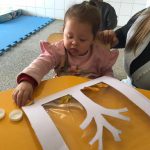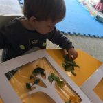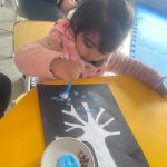 - Utilizando cotonete e tinta pintar árvore, fazendo as folhas através do carimbo.