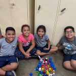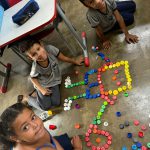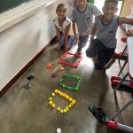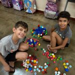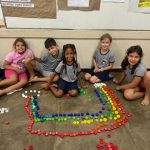 A professora se aproveitou de uma atividade matemática de contagem de tampinhas e propôs aos alunos que criassem desenhos com elas.