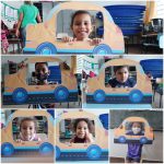 - contação da história Um passeio no trânsito de Taíse Agostini com ilustrações e imagem de um carro de papelão; dobradura formando um livrinho com as regras do trânsito.