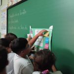Alunos em trabalho coletivo, jogos e brincadeiras sobre a conscientização e importância das ferramentas lúdicas nas aprendizagens incidentais. O tema trânsito foi abordado pela escola, que executou os trabalhos com dedicação de professoras e alunos.