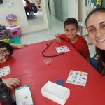 O “Projeto Escola Arteris com o tema “Trânsito Seguro no Bairro”, busca desenvolver nos alunos, familiares e na comunidade local a conscientização cidadã no trânsito. E não poderíamos deixar de fora os nossos alunos que frequentam a Sala de Recursos Multifuncional, essa sala têm a função de potencializar o ensino dos alunos com deficiência, necessidade especial ou com altas habilidades para promover condições de acesso, aprendizagem e participação no ensino regular. Como a professora trabalha com públicos, idade e especificidades diferentes, realizou algumas atividades sobre a temática do projeto. Em todos os grupos a professora iniciou com uma roda de conversa sobre o trânsito no bairro, realizou atividade de maquete, pois é uma das formas de representação do espaço que tem como vantagem o fato de permitir a percepção do abstrato no concreto sobre as placas e avenidas. Com outro grupo criou situações de trânsito com a faixa de pedestre e os veículos (usou a técnicas de colagem e recortes), com outro grupo criaram um circuito de papelão com pintura e dobraduras, sendo que os circuitos em papel são atividades por meio das quais produzem desenhos, pinturas ou colagens que dão formas e sustentação visual dos elementos do trânsito. Com a utilização de materiais condutivos, a confecção dos circuitos aproxima, por meio da experimentação inicial, o conhecimento. Depois com outros alunos realizou atividades de fixação com material impresso e construiu um big semáforo eletrônico e jogaram o bingo das placas de trânsito, um brincadeira que auxilia na aquisição do conhecimento. Todas as atividades desenvolvidas sobre o transito na sala de recursos, é preciso despertar as ideias por meio da utilização da produção e construção, os alunos devem construir e participar ativamente das atividades propostas nas aulas, isso é inclusão.